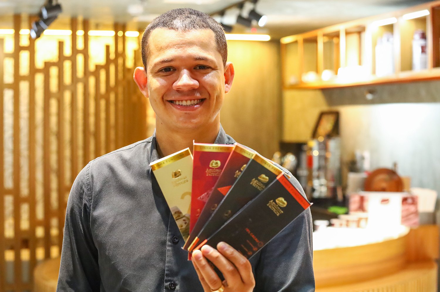 Antes de decidir empreender, Alexandre treinava durante o dia e fazia os bombons à noite. Aos poucos, a Aguimar Ferreira Chocolateria cresceu e hoje produz de mais de 7 toneladas por ano, em uma linha diversificada, que inclui bombons finos para casamentos e outros eventos, itens personalizados e chocolates funcionais, com opções veganas e zero açúcar. De olho no futuro, ele, sua família e os 13 colaboradores (distribuídos em duas unidades produtivas e uma loja) trabalham para ampliar a produção e investir no mercado externo.