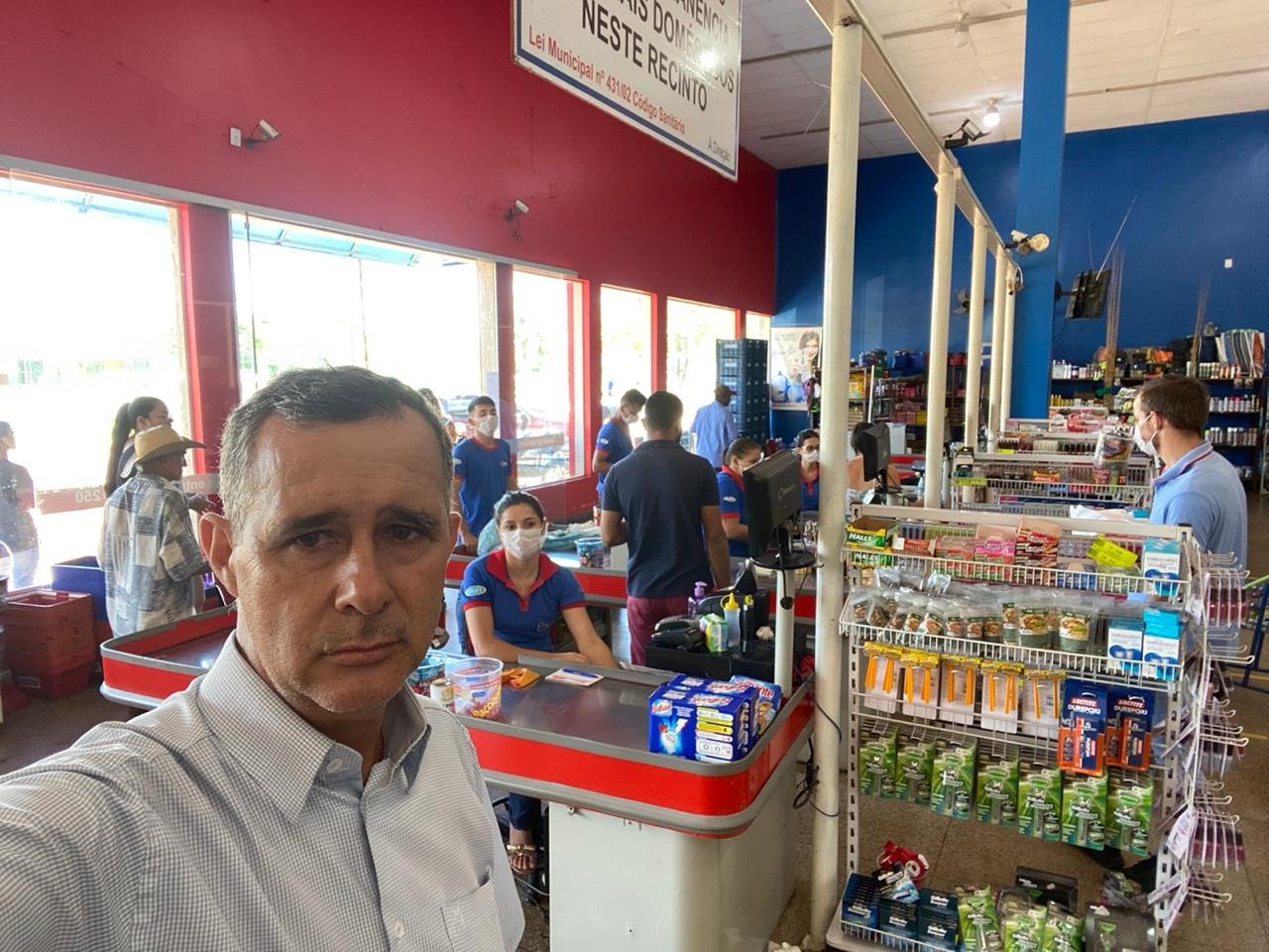 Geftany Calixto da Silva é dono de postos de combustíveis, depósitos de gás e de supermercado no município de Vila Rica (MT), onde comunica a comunidade sobre os horários de funcionamento e orientações
