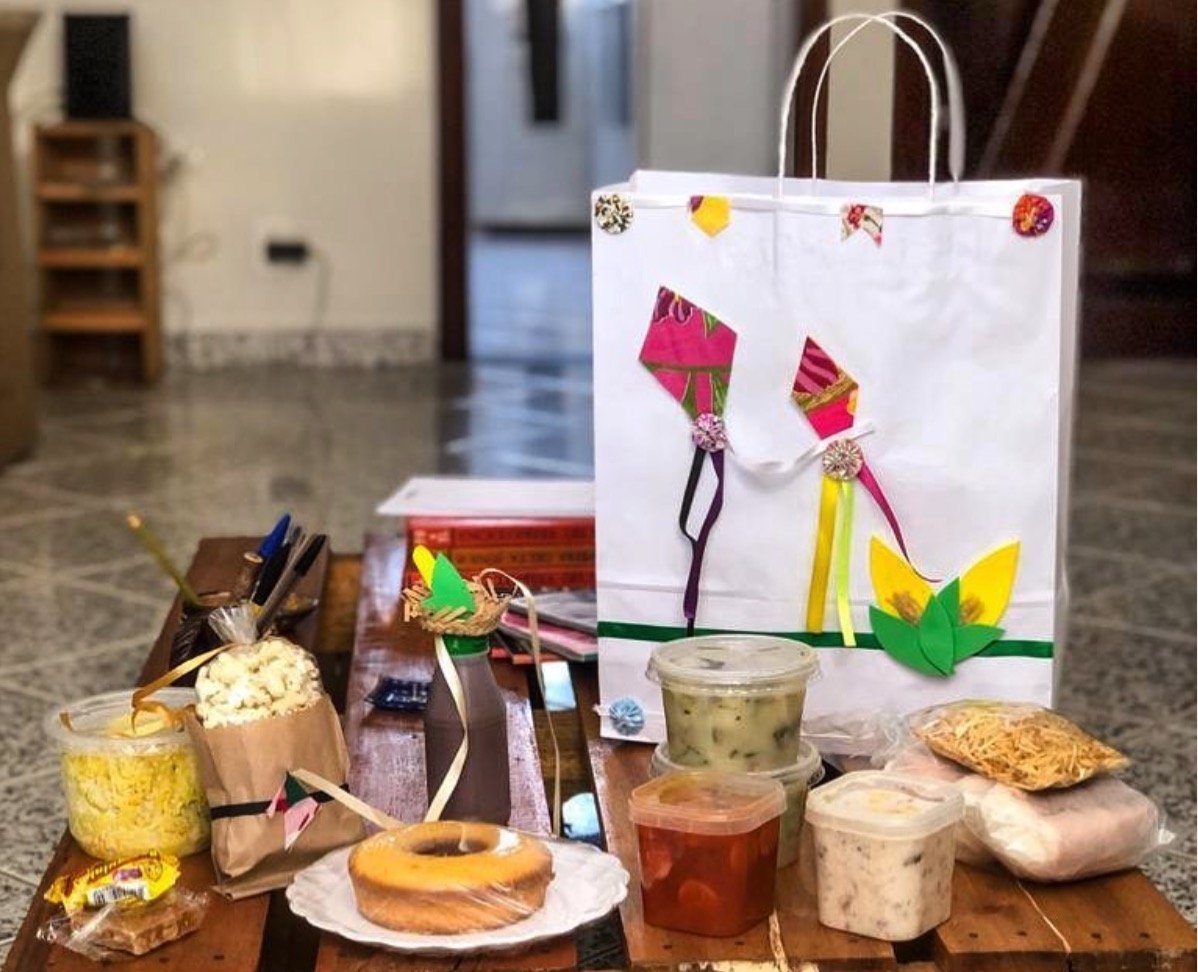 A empreendedora Cristina Silva, proprietária da @cristina.bolosetortas, já está na segunda edição do projeto Quermesse da Cris. Com raízes nordestinas, morando em Brasília, ela faz na cozinha de casa as receitas típicas que vão embaladas em kits com 10, 18 e 27 itens. “Sou de uma família nordestina e o São João por lá é muito forte. No meio do ano, sempre fizemos comes e bebes juninos em casa e íamos nas festinhas das igrejas. Ano passado, quando percebi que esse momento, tão esperado por todos, não poderia acontecer presencialmente, decidi levar um pouco da festa junina para a casa das pessoas, foi aí que surgiu a ideia de criar o kit junino com alguns dos principais itens das barraquinhas”, conta.