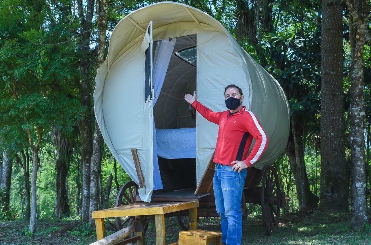 Rogerio Carlos Borges de Oliveira, empreendedor de Campo Largo, foi um dos participantes que elaboraram uma nova experiência: o glamping. A palavra é uma combinação entre glamour e camping, atividade que está sendo cada vez mais procurada no Brasil. O projeto tem como nome “Il Carrello” (a carroça, em italiano), terá um glamping construído em uma antiga carroça e prevê experiência de charme e conforto. O início do funcionamento está previsto para maio de 2022.