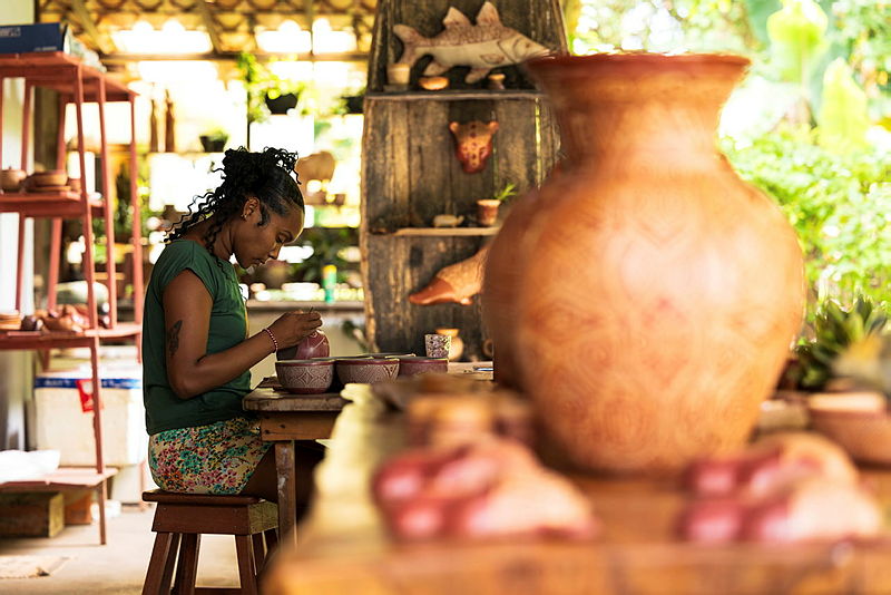 Uma dessas iniciativas é o Ateliê Arte Mangue Marajó, um coletivo de 22 artistas e ceramistas que há mais de 20 anos atua na formação, salvaguarda e difusão da cerâmica e da cultura marajoara.