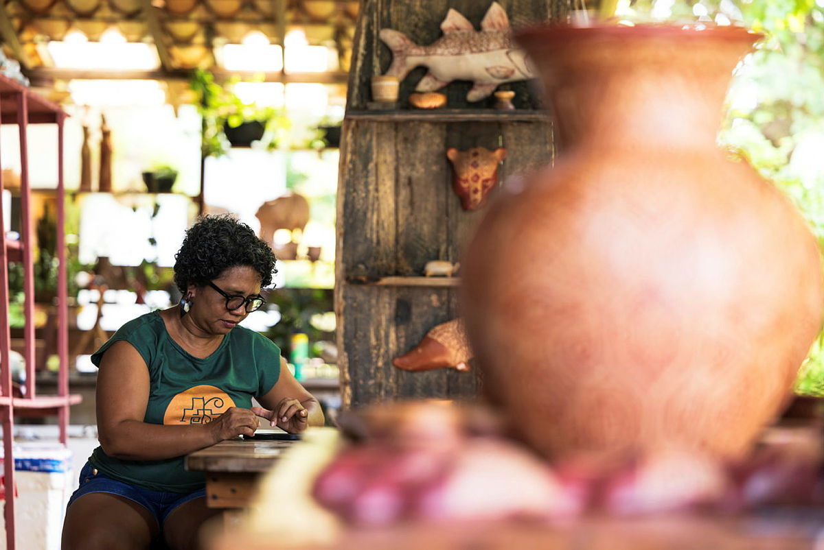 Uma dessas iniciativas é o Ateliê Arte Mangue Marajó, um coletivo de 22 artistas e ceramistas que há mais de 20 anos atua na formação, salvaguarda e difusão da cerâmica e da cultura marajoara.