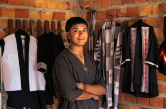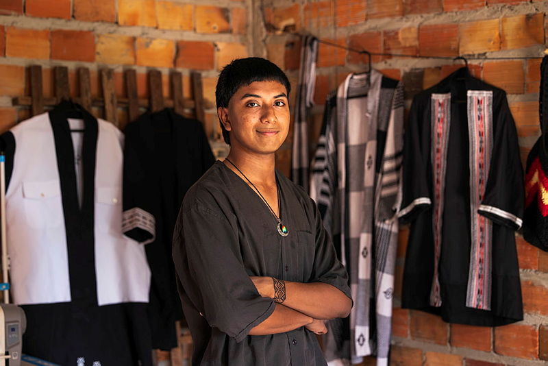 O filho de Gleice, Iuri, segue os passos da mãe e conta que desde cedo já arriscava as primeiras costuras. “Lembro que eu fazia as roupas dos meus bonecos desde novinho”, conta. “Depois continuei acompanhando e ajudando a minha mãe. Dentro das capacitações que a gente teve, pude desenvolver mais minhas habilidades e aperfeiçoar um olhar mais forte para essa área e entender que temos que nos apropriar da nossa identidade marajoara, para não vir alguém de fora e se apropriar do nosso lugar”, completa Iuri.