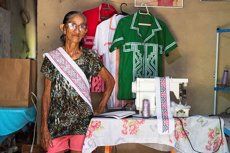 “Depois disso vieram os cursos de corte e costura, de grafismo marajoara, empreendedorismo, entre outros. Também já realizamos diversas mostras e até desfiles. Agora, conseguimos entregar 30 máquinas de costura novas para os integrantes do polo, além de conseguir mapear esses produtores, saber quem são, onde estão, com o que trabalham. Hoje temos mais de 70 costureiras e costureiros inscritos no polo, que trabalham não só com a camisa marajoara tradicional, mas replicando outros grafismos, fazendo biojoias e até quimonos”, explica Renata Rodrigues.