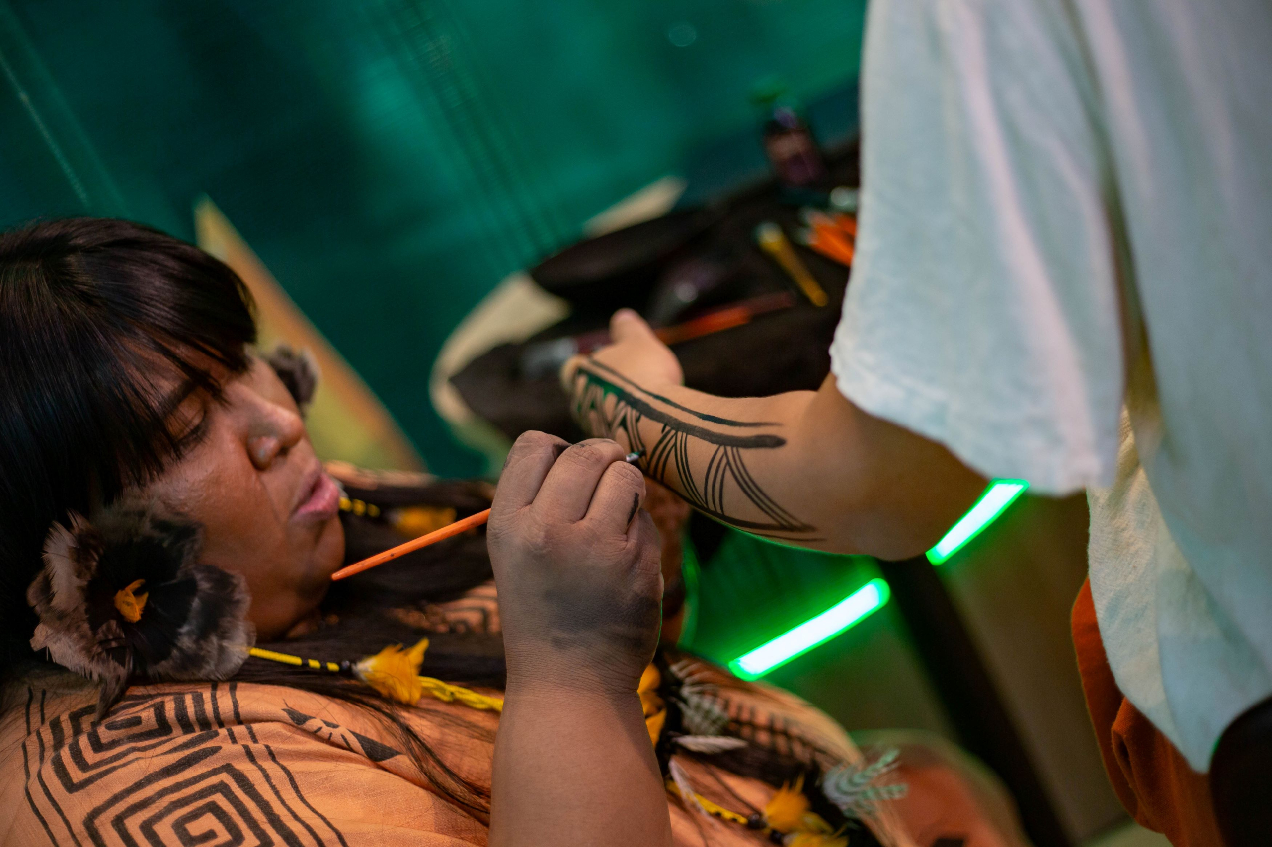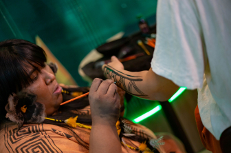 Os visitantes participaram de um quiz sobre a COP (conferência mundial sobre mudanças climáticas, que ocorrerá em Belém no período de 10 a 21 de novembro) e fizeram grafismos indígenas com a multiartista Thaís Kokama, da Aldeia Inhaã-bé, comunidade indígena localizada à margem do Rio Tarumã-Açu, em Manaus (AM). “Através da arte levamos informação sobre o nosso povo, e o Sebrae é nosso grande parceiro nesta empreitada”, conta Thaís Kokama.