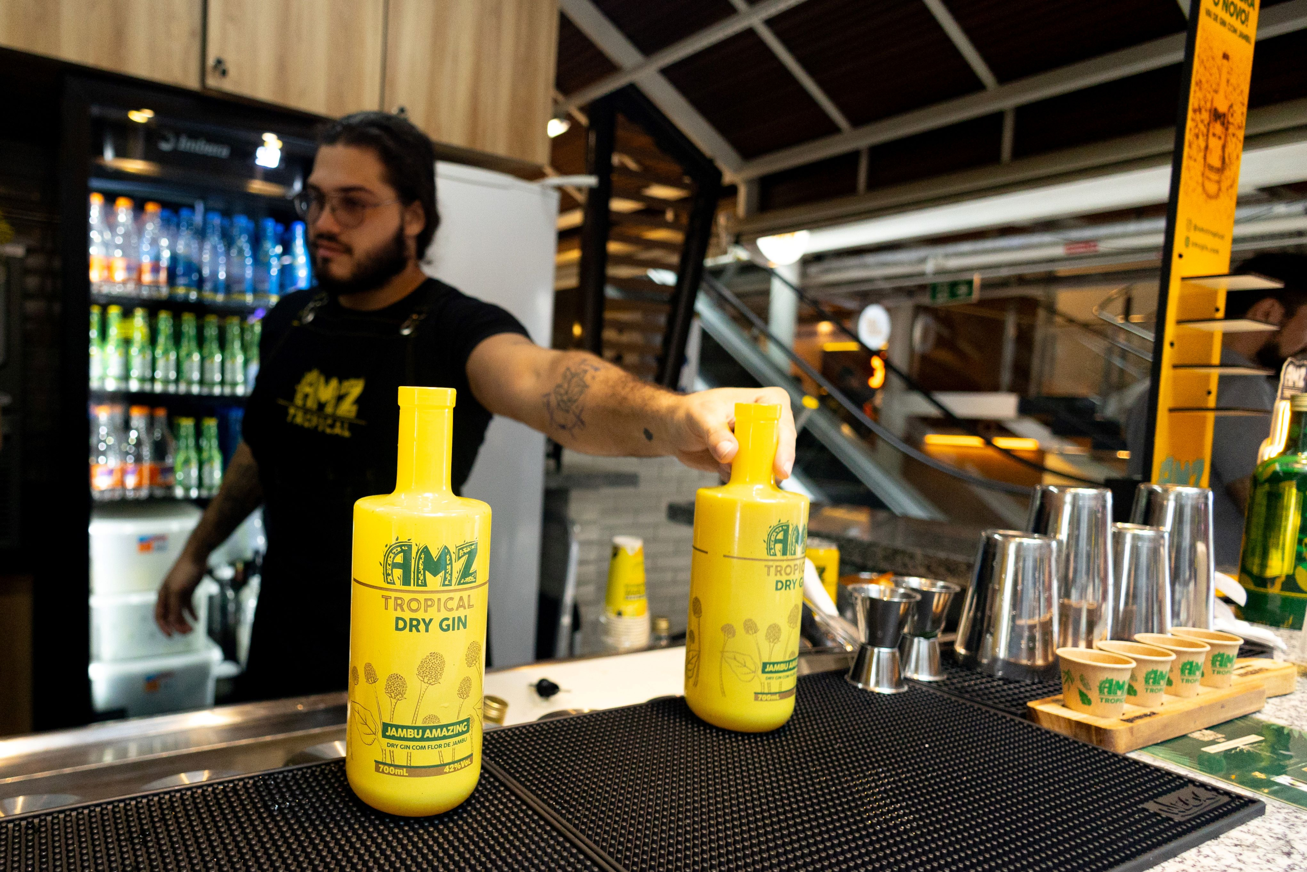 O Sebrae também é um dos principais parceiros de jornada da AMZ Gin Tropical. Com sede no Pará, a marca de gin artesanal foi criada por Leandro Daher, de 39 anos, oficialmente após a pandemia da COVID-19. Foram muitos caminhos percorridos até ser medalha de prata na categoria “Botânico Destaque” no prêmio World Gin Awards 2024, em Londres, com o gin feito com a flor de jambu; e medalha de ouro na 14ª edição do Concurso Anual Nacional de Bebidas Destiladas (New Spirits), em Belo Horizonte/MG, com o gin feito com a castanha do Pará. “O Sebrae, principalmente aqui no Pará, é um grande parceiro da AMZ”, conta Leandro.