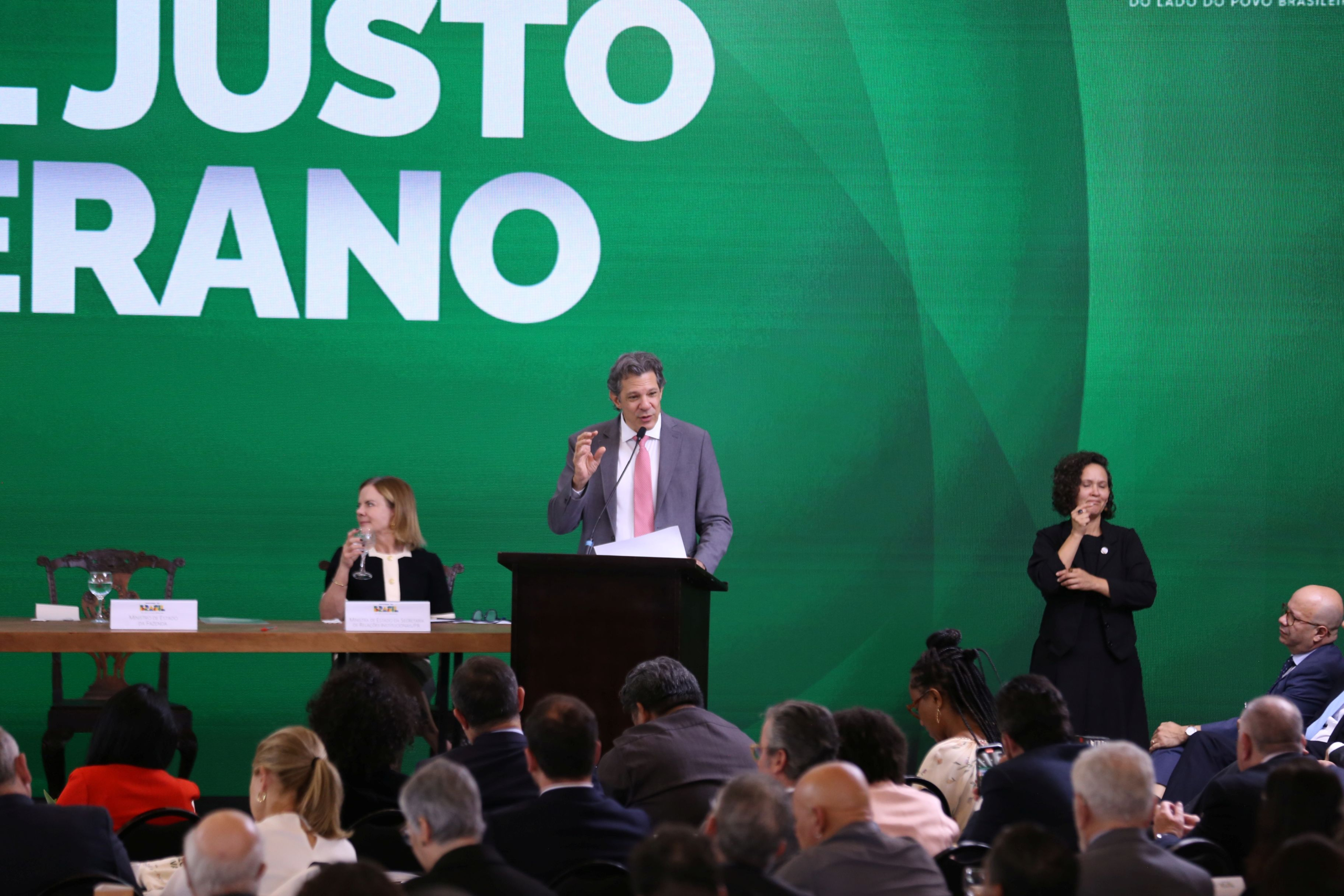 Fernando Haddad ressaltou ações do governo, como a isenção do Imposto de Renda para quem ganha até R$ 5 mil sem que houvesse risco às contas públicas. “Nós quebramos a cabeça para dizer, como é que nós vamos compensar? E aí saiu do Marcos Pinto (secretário de Reformas Econômicas) a ideia de cobrar um Imposto de Renda mínimo de 10%, que vai angariar a receita necessária para equilibrar as contas de quem vai deixar de pagar. São 141 mil que vão passar a pagar, porque pagam hoje 2,5% de alíquota, para beneficiar 15 milhões, dos quais 10 milhões ganham até R$ 5 mil e 5 milhões ganham até R$ 7.350. Isso tudo se deve a muito trabalho, sobretudo no crédito”, afirmou Haddad.
