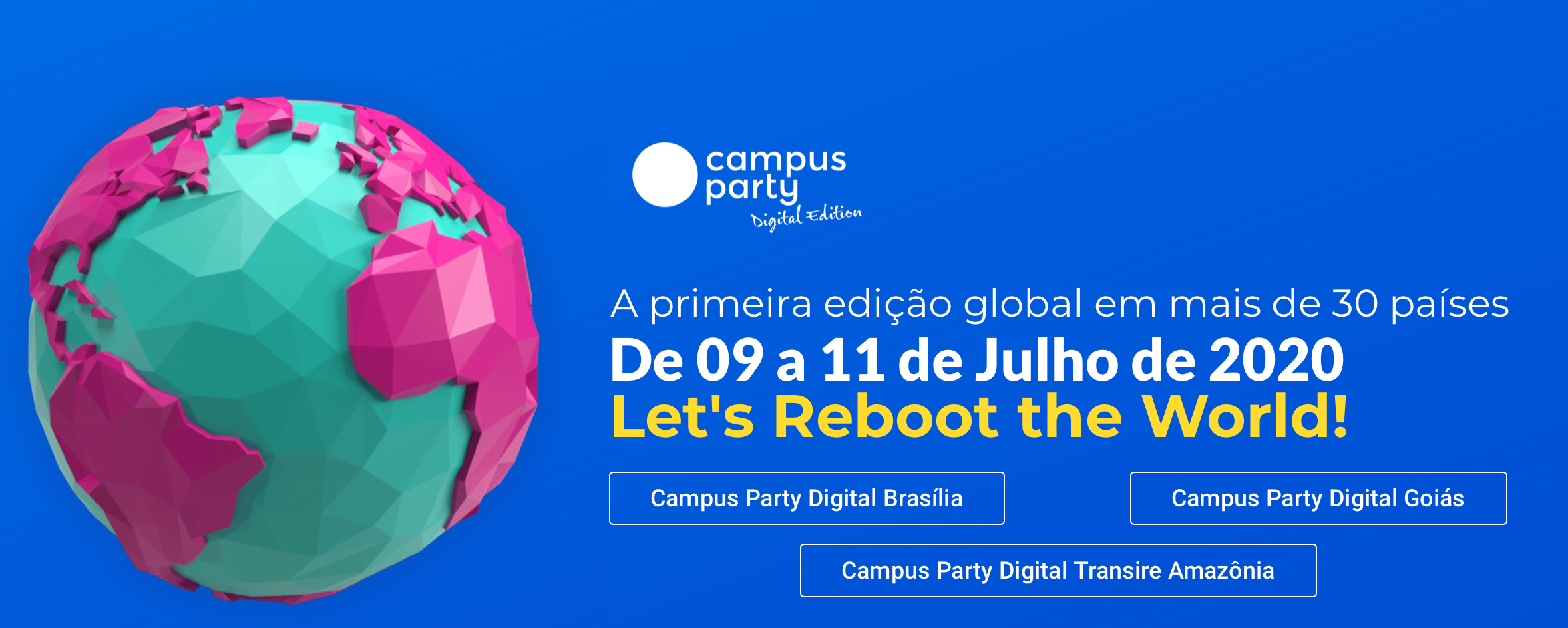 A Campus Party terá pela primeira vez em sua história uma edição 100% online e simultânea em 50 países diferentes. As inscrições ao maior evento de inovação, criatividade e cultura maker são gratuitas. A Digital Edition será de 9 a 11 de julho e vai contar com a participação de diversos palestrantes brasileiros e de outros locais do mundo.