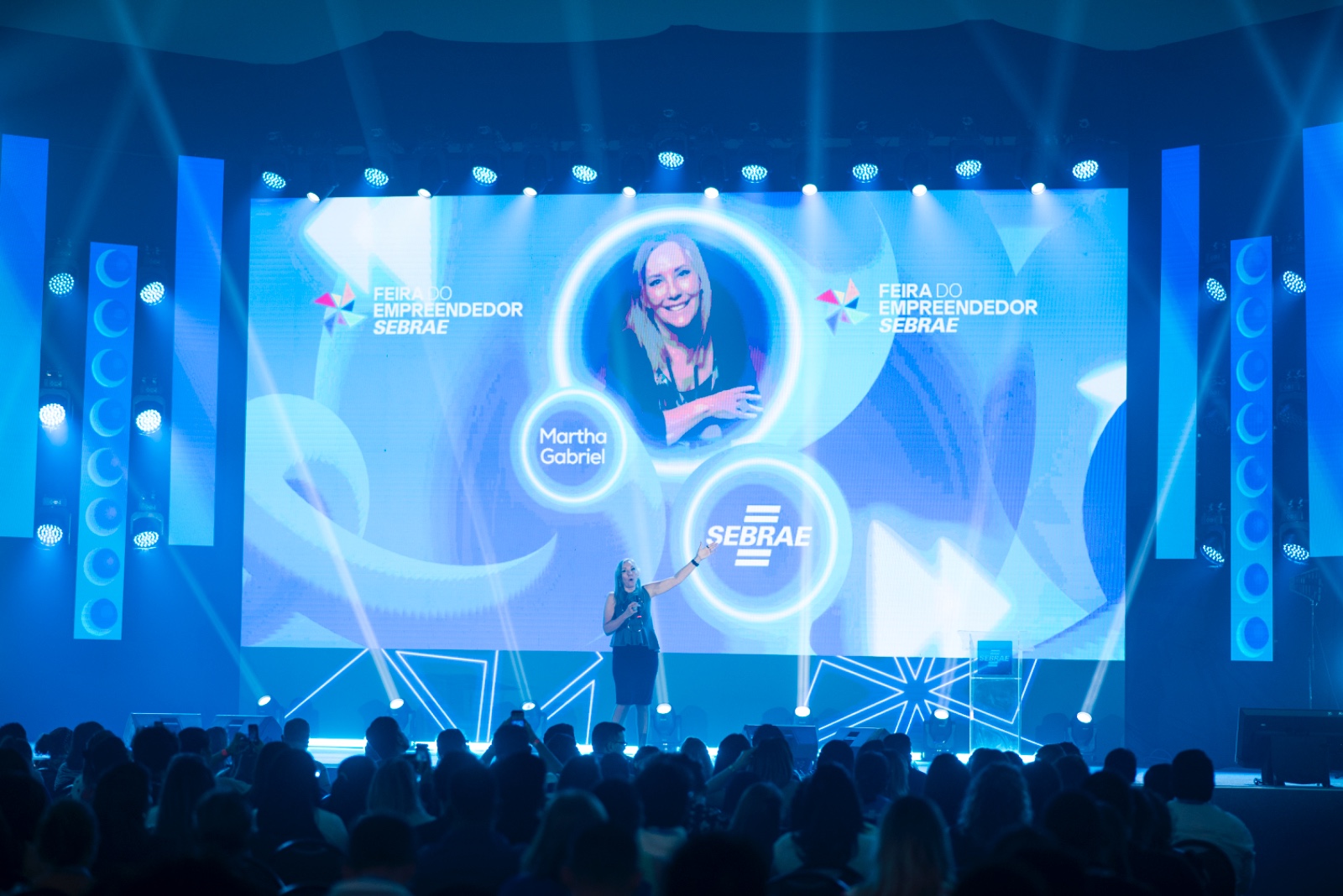 A abertura da rodada de palestras da Feira do Empreendedor ficou por conta de Martha Gabriel, ícone multidisciplinar da América Latina nas áreas de negócios, marketing digital e futurismo, reconhecida internacionalmente pelo Institute for the Future (IFTF). Com sua visão inspiradora, Martha abordou os desafios e oportunidades da transformação digital e destacou a importância do autodesenvolvimento na era tecnológica.
