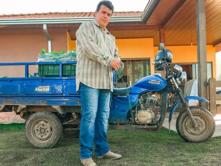 Atento a essa necessidade, assim que a demanda por seus produtos caiu, o olericultor de orgânicos Davi de Abreu Rocha procurou o Sebrae/PR em busca de ajuda. Recebeu consultorias em marketing digital, criou uma conta no WhatsApp Business, que utiliza para enviar a lista de hortaliças e legumes orgânicos disponíveis para venda aos clientes, e também passou usar o Facebook. “Só está faltando concluir a plataforma de pagamento, para eu enviar o link e o consumidor pagar pela internet”, conta, animado. As entregas são realizadas diariamente com um triciclo. ]