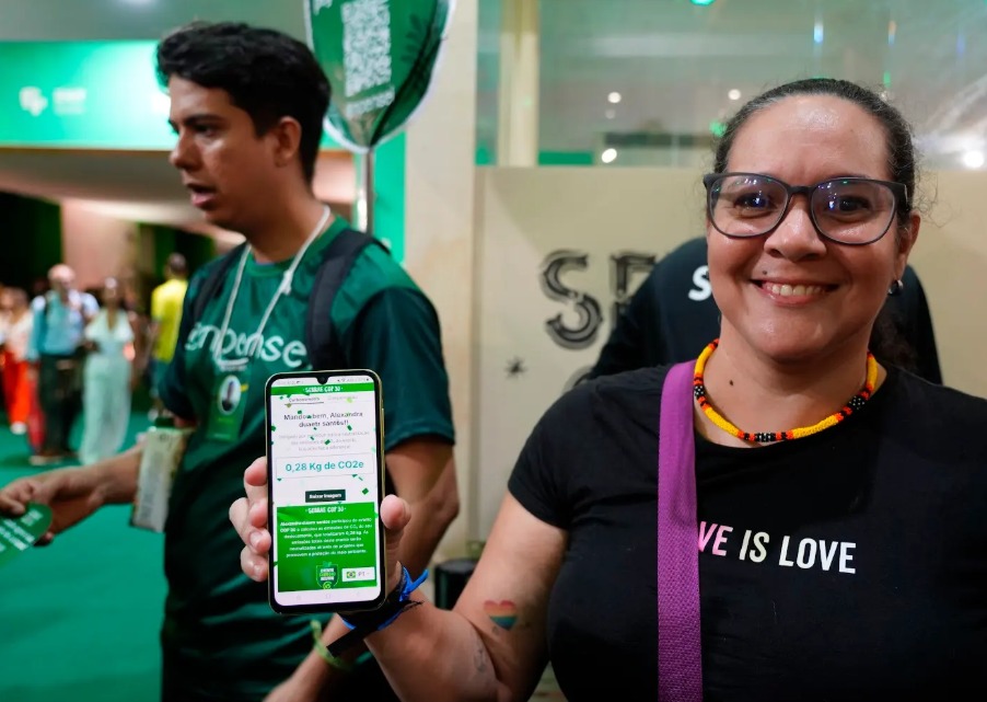 Na Green Zone da COP30, o estande do Sebrae oferece mais do que debates sobre clima. Em poucos minutos, os visitantes podem calcular a quantidade de carbono emitida no trajeto até o Parque das Cidades, onde se localiza o espaço da instituição. Para a medição, basta escanear um QR Code, informar o meio de transporte, a distância percorrida e o local de origem e pronto, a ferramenta mostra sua pegada de carbono.